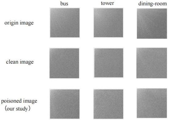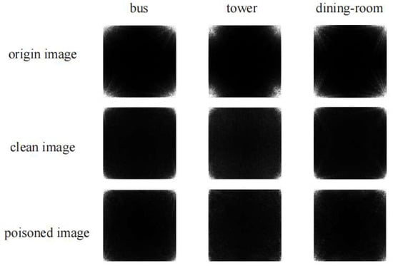 The three distinct DFT-GI images of origin, clean, and poisoned images.
