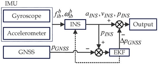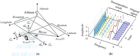 Highly accurate and reliable positioning, navigation, and timing technologies are essential for the safe operation of mobile smart devices [1]. Inertial navigation systems (INS) are characterized by short-term high accuracy and independence from environmental influences. However, standalone INS solutions degrade over time due to the significant errors inherent in the raw measurements of inertial measurement units (IMUs) [2]. This degradation is especially pronounced and drastic in INS systems that use small, low-cost IMU devices, which many mobile devices are compelled to use due to space constraints. The integration of global navigation satellite systems (GNSSs) and INS has been widely used to improve the accuracy and reliability of positioning [3,4], because GNSSs can provide long-term accurate and continuous positioning signals under decent visibility conditions [5], compensating for the defect of low-cost INS. However, the GNSS has one almost inevitable drawback: it relies heavily on stable signals for high-precision positioning. In areas with ambiguous signals, such as cities, forests, and tunnels, GNSS signals can become unstable or even lost [6,7]. If the GNSS signal is interrupted for a prolonged period, the GNSS/INS integrated navigation system will inevitably revert to a pure INS, leading to the rapid accumulation of positioning errors and compromising the safety and efficiency of vehicle operation [8].
