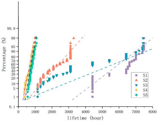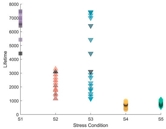- Lin, K.; Chen, Y. Reliability assessment model considering heterogeneous population in a multiple stresses accelerated test. Reliab. Eng. Syst. Saf. 2017, 165, 134–143. [Google Scholar] [CrossRef]