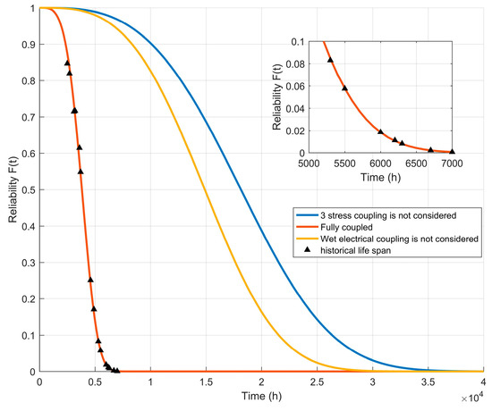 - Zhang, F.; Tian, R. Multi-stress accelerated life evaluation method considering generalized coupling. J. Syst. Eng. Electron. 2023, 45, 3350–3361. [Google Scholar]