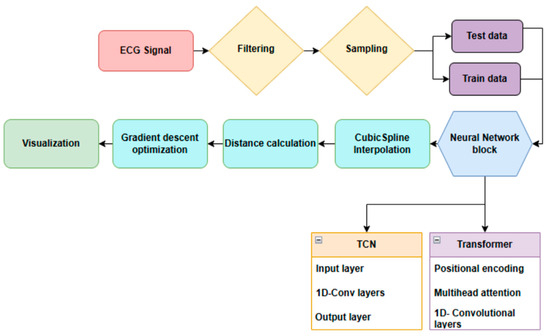 The TCN model uses convolutional layers to represent temporal dependencies of the ECG signal and has been designed specifically for sequence modeling. Thus, it is very well-suited, and its architecture is optimized for long-range interactions. On the other hand, this TCN model refines time points into rigid alignment with the original signal through the use of gradient descent optimization and training on the original ECG signal. This approach ensures that even in the case of noise, the important features of the ECG signal are captured accurately [5,6,7].