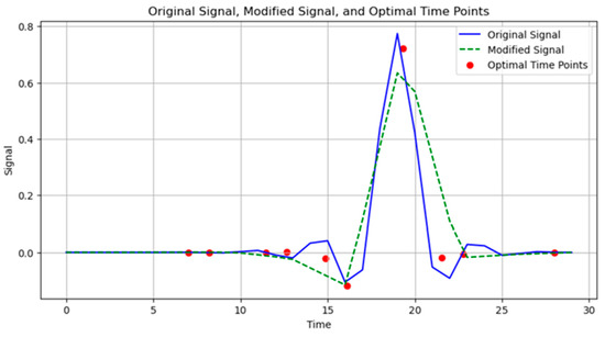 Initial time points: The collection of equidistant points is used to initiate the optimization process by providing a baseline from which the algorithm iteratively refines the time points to capture the essential features of the original signal.