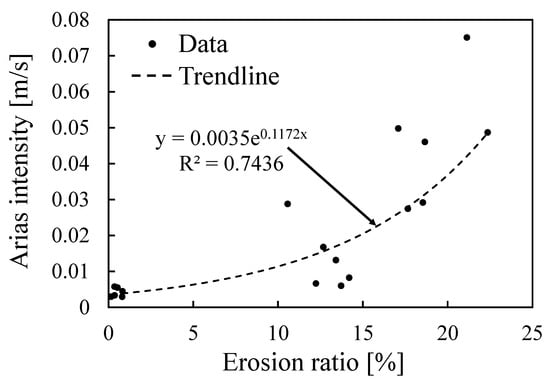 Relationship between Arias Intensity (IA) and erosion ratio (duration 0–900 s).
