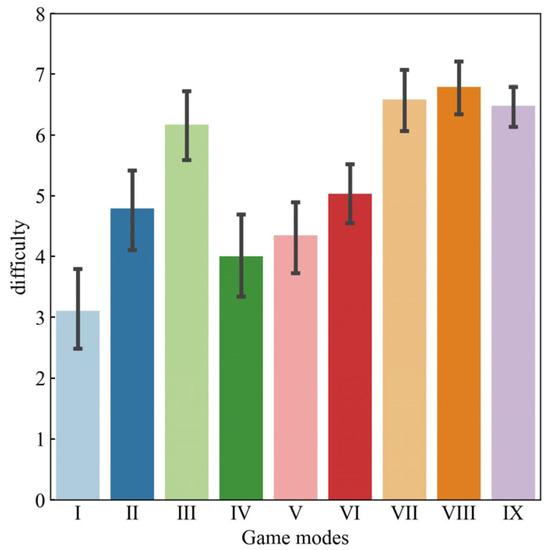 Users’ subjective difficulty ratings for each game mode.