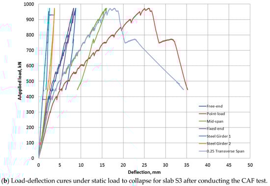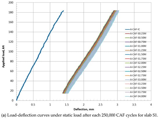Static load-deflection curves for slab S1 after being subjected to CAF loading.