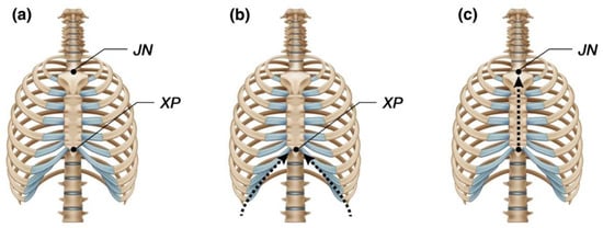 An operational definition specifies the detailed procedures and criteria that researchers use to measure or manipulate variables in a specific study. In this research, the xiphoid process and the jugular notch were selected as the new breast measurement points. The definitions of these bony landmarks and the palpation methods used for their identification are provided below. The specific palpation techniques are illustrated in Figure 2.