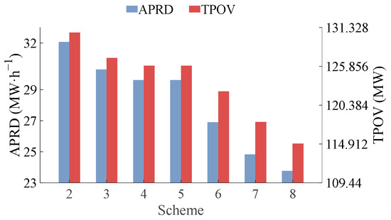 The APRD and TPOV under different pumped storage configuration schemes.