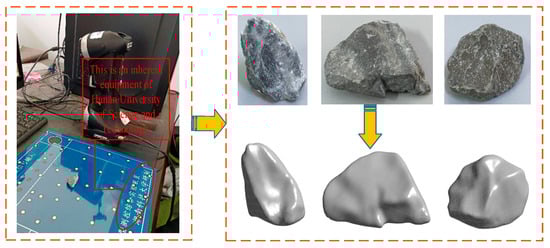 Relative roughness Kd is defined as the ratio of absolute roughness K to the equivalent diameter de. According to the one-dimensional flow model assumption, the area where the lubrication layer contacts the plunger layer consists of coarse aggregate particles with uniform particle size. Thus, the absolute roughness is considered to be the average particle size of the aggregate particles. Aggregate particles have complex shapes and different sizes. The HandySCAN non-contact 3D laser scanner and reverse modeling software Geomagic Design X are used to geometrically reconstruct the aggregate particles. The total surface area Sa of the selected aggregate particles is calculated using the geometric body surface area statistics function of the 3D mapping software(Geomagic Design X 2017 software), as shown in Figure 5. To equate the hydraulic radius of the non-spherical particles to that of the spherical particles, the equivalent diameter K of the non-spherical particles is calculated as follows:
