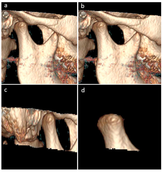 - Tecco, S.; Saccucci, M.; Nucera, R.; Polimeni, A.; Pagnoni, M.; Cordasco, G.; Festa, F.; Iannetti, G. Condylar volume and surface in Caucasian young adult subjects. BMC Med. Imaging 2010, 10, 28. [Google Scholar] [CrossRef] [PubMed]