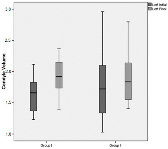 | Left Condyle Volume (cm3) | Group I (n = 15) | Group II (n = 14) | %95 CI | p | |