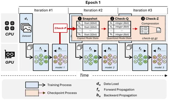 7]. In other words, after unexpected system crashes, the training process can be resumed using the data belonging to the last version of the checkpoint operation instead of performing the first step again. However, the data stored in the storage media are never reused unless the system crashes and are unavailable after running the next training epoch.