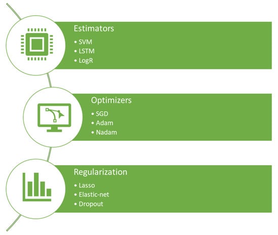 Aside from the selection of the appropriate estimator (i.e., algorithm), the utmost care should be taken when selecting optimizers and types of regularization, since all of them can contribute to biased algorithmic decisions, regardless of the absence or presence of bias in the input data [148]. Regarding optimizers, those are algorithms that are utilized in neural networks to change their attributes, such as weights and learning rate, thus minimizing the losses. There have been proposed several optimizers in the literature, from which the most widely used are Stochastic Gradient Descent (SGD) and its variant Stochastic Gradient Descent with Gradient Clipping (SGD with GC), Momentum and its variant Nesterov, Adan (Adaptive Nesterov) and AdaPlus, AdaGrad (Adaptive Gradient), its variation Adadelta, RMSProp (Root Mean Square Propagation) and its variants NRMSProp and SMORMS3 (Squared Mean Over Root Mean Squared Cubed), as well as Adam (Adaptive Moment Estimation) and its variants Nadam, AdaMax and AdamW (Adam with decoupled Weight Decay).