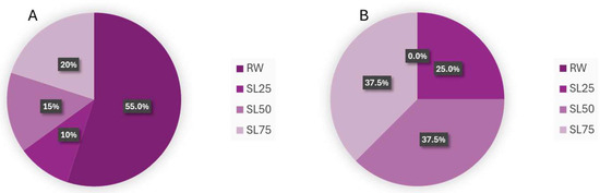 Figure 4A shows that in general, the dry reference wine was the favorite one for the Spanish judges, with 55% of votes. The judges valued the intense color of this wine against the lighter color of the sweet wines. On the other hand, of the judges that preferred the sweet wines, 20% opted for the SL25 wine, 15% preferred SL50 and 10% chose the SL75 wine as their favorite.