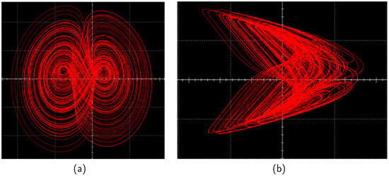 and the Lyapunov exponents of the system (1) can be obtained when , , and [7,8,36], i.e.,