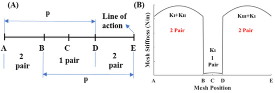 The TVMS of the LCR and HCR gears are calculated by using numerical methods such as finite element analysis and MATLAB programming in this study. The single tooth stiffness (STS) of the LCR and HCR gears must be calculated for the definition of the TVMS. The STS of the LCR and HCR gears are calculated according to the following equation. More details are given for calculating the STS using the numerical methods used in this study in [11,20,23,30].