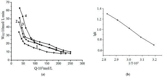 - V0 is a volume of absorbed oxygen (mL) at the beginning of the experiment (min).