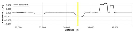 A section is identified and highlighted in relation to the curvature in Figure 4. The noise level is significantly higher on the left side than the right one, for both the first and second wheelset. As the section represents a left-hand curve, the noise level is in accordance with the definition of slip waves: rail corrugation that occurs on the inner/low rail in curves. Therefore, the potential rail corrugation is expected on the left side and the following investigation is focused on the left axle box accelerations (acc_left_1, acc_left_2).