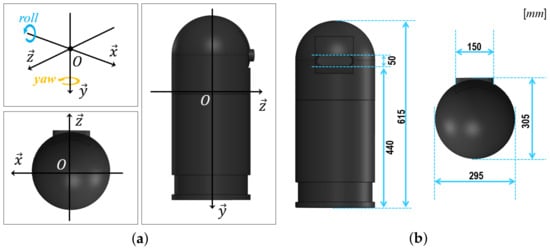 Coordinate systems and the dimension of the MiVeReR prototype; (a) definition of coordinate system; (b) dimension of outward frame.