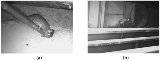 To evaluate the effectiveness of the overall MiVeReR operation, field tests were conducted at different locations. All experiments were conducted in compliance with the protocol which was reviewed by the Institutional Animal Care and Use Committee and approved by the President of the University of Miyazaki (Permission Number: 2021-044-2). The setup of the first field experiments conducted in a feed shed close to a swine barn is shown in Figure 17a. This location was selected since mice appeared night and day. The distance from the camera of MiVeReR to the wall was about 1.5 m. The results of MiVeReR confirm its successful startup operation after detecting a mouse, tracking ability, and generation performance. In addition, mice were typically observed to be stationary in response to (see Figure 18). Many mice of different sizes than expected were observed. Although we observed situations in which mice ran away in response to , we could not determine whether they reappeared since they were not followed up. It is clear that MiVeReR can generate and send to intruding mice, and individual mice respond to the signal.