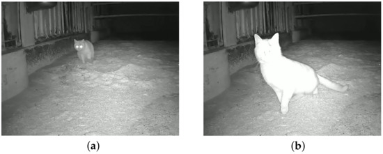In general, wild animals that invade farming areas include mice, wild cats, boars, birds, and so on [9]. They are typically active at night, invading farms for food or attacking livestock [10]. To repel these vermin, or to prevent their invasion, various methods have been devised and used [11,12,13], for example, using sound and/or light signals, the isolation of power grids, and predator-shaped mock-ups [14]. According to protection objectives, such methods are classified into three aspects: segregation, killing, and expulsion. The first approach, segregation, is primarily used to prevent vermin invasion after installing fences with power grids and/or artificial lights [15,16,17]. With the advances of IoT technologies, automatic monitoring methods using camera systems installed on the fences have been reported [18,19,20]. Based on artificial intelligence, the methods generate expulsion sounds according to the types of vermin that have been detected [21,22,23]. However, installation and maintenance costs are high, and it is difficult to change the location and size after placement. Regarding the second approach, vermin can be killed in many ways, such as by using weapons, traps, and drugged baits [24,25,26,27]. This approach is highly effective in controlling the number of vermin in a certain area. However, it requires the disposal of dead vermin bodies. Poisonous baits can lead to death or injury. This method may endanger the consumers of livestock that have ingested baits. The method is not suitable for wild animal preservation.