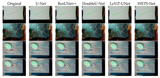The improved network can more effectively learn and utilize the importance of different channels, thereby increasing focus on key features and reducing noise interference in the final feature representation. This layer-wise optimization and cross-scale fusion method enables WETS-Net to perform well in processing complex scenes, not only improving the accuracy of segmentation tasks but also enhancing overall computational efficiency. Consequently, the network becomes more suitable for practical application scenarios.