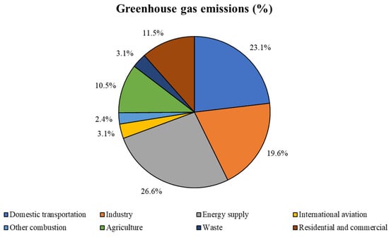- Statista. Global Greenhouse Gas Emissions by Sector. 2022. Available online: https://www.statista.com/statistics/1325132/ghg-emissions-shares-sector-european-union-eu/ (accessed on 22 May 2024).