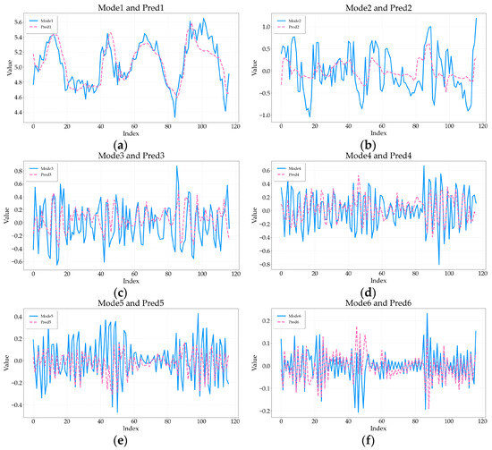Observations of predictions without VMD reveal that the predicted values fluctuate within a narrow range (see Figure 15), indicating that the model has limited learning capabilities regarding the data. In contrast, predictions made after VMD show a wider range. Although there was no significant improvement in evaluation metrics, VMD better predicts the trends in magnitude changes and is closer to the actual magnitude variations. This suggests that VMD is effective in reducing noise and extracting key features, enabling the model to better capture the inherent patterns in the data, thereby improving the reliability and stability of the predictions.