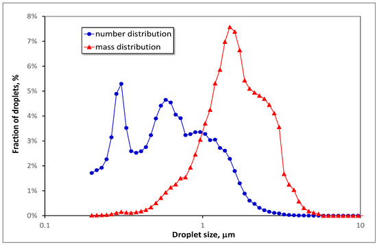 The size distribution of the aerosol droplets upstream of the filter is presented in Figure 3. The inlet concentration of oil was approximately 40 mg/m3.