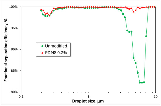 Fractional efficiencies for unmodified and PDMS 0.2% cartridge elements.