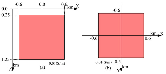 Deep-depth model: (a) the section view; (b) the plan view of the 3D anomaly.