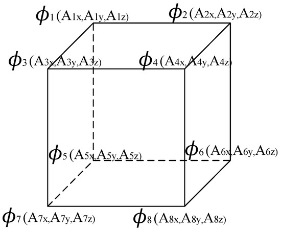 For a given mixed nodal and edge-based element, the distribution of and is shown in Figure 1, namely one on each node and one on each edge. In contrast, for a given nodal element, as shown in Figure 12, there are three components of (,,) and one at each node. It is evident that the degrees of freedom (DoF) for one nodal element is 32, while it is only 20 for one mixed nodal and edge-based cell.
