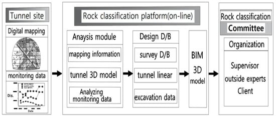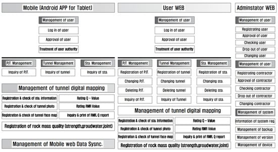 - Park, S.W.; Kim, H.G.; Bae, S.W.; Kim, C.Y.; Yoo, W.K.; Lee, J.D. Development of Mobile System Based on Android for Tunnel Face Mapping. J. Eng. Geol. 2014, 24, 343–351. [Google Scholar] [CrossRef]