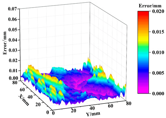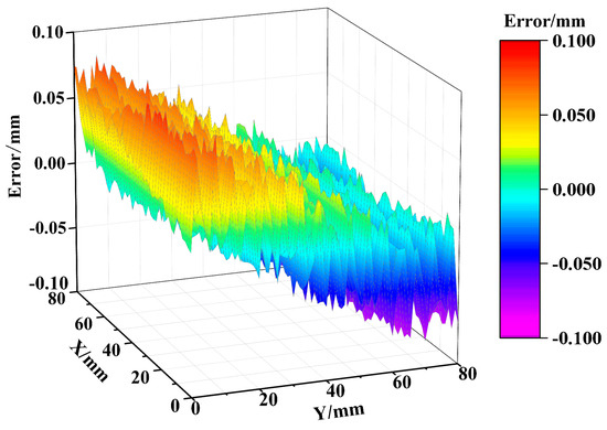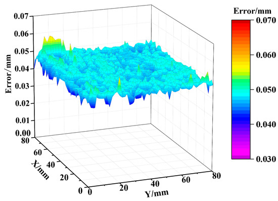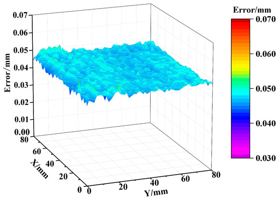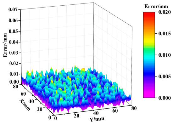By iteratively adding the simulated machining error to each measurement point, the machining error generated during the actual machining process was simulated. The simulated systematic error is generated by Equation (23), and its value and distribution are shown in Figure 3.