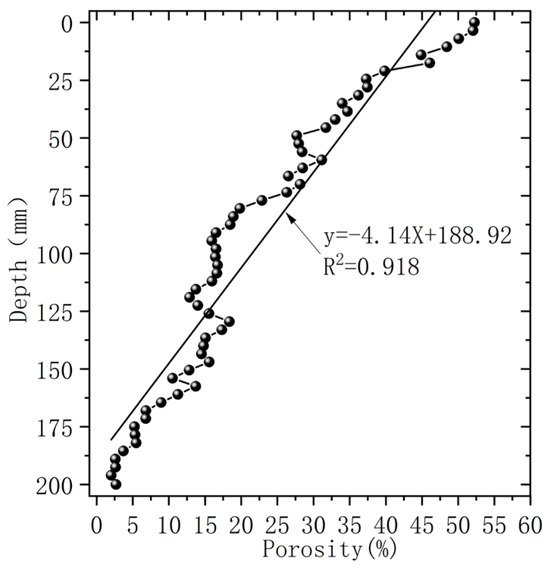 - The correlation analysis of quantified pore parameters indicates that as depth increases, there is no direct relationship between pore area percentage and roundness. However, the number of pores does affect roundness values. Both the number of pores and the ratio of pore area to box-counting dimension exhibit a clear linear positive correlation, with the linear influence of pore area on the box-counting dimension being particularly distinct. Meanwhile, there is a negative correlation between the box-counting dimension and roundness.