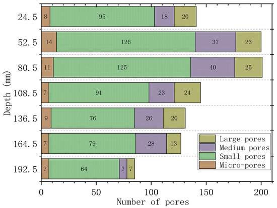 Distribution of the number of pores in each scale of pore including large pores, medium pores, small pores, and micropores. It can be seen that there are obvious differences in the number of pores each scale.