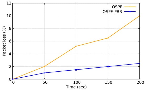 Packet loss comparison in OSPF and OSPF with PBR module.