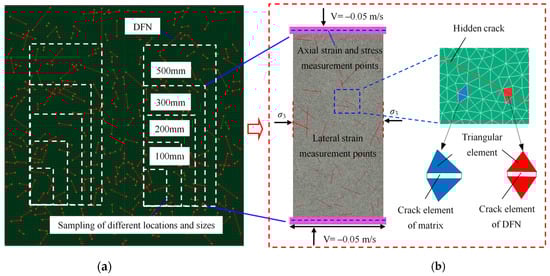 - The SRM model was established by combining an FDEM model representing an intact matrix and a DFN model generated based on the statistical characteristics of the geometric parameters of hidden cracks. It represents an important method for efficiently and accurately studying the mechanical properties of hard brittle rocks with complex structures.