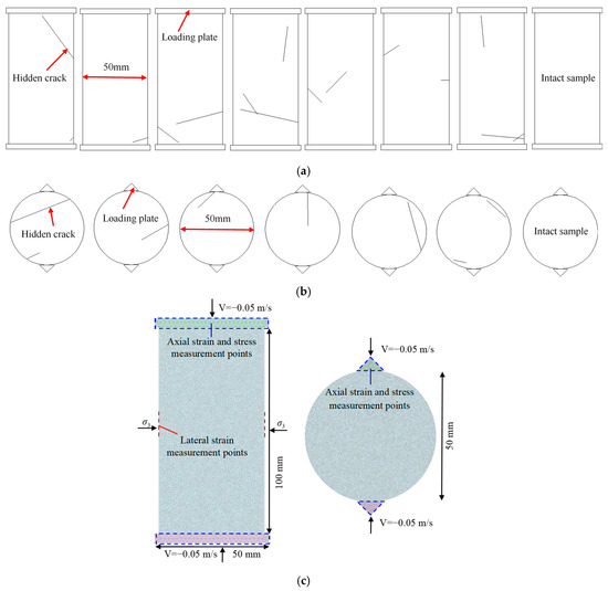 - Lin, Q.B.; Cao, P.; Meng, J.J.; Cao, R.H.; Zhao, Z.Y. Strength and failure characteristics of jointed rock mass with double circular holes under uniaxial compression: Insights from discrete element method modelling. Theor. Appl. Fract. Mec. 2020, 109, 102692. [Google Scholar] [CrossRef]
