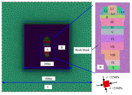 - Wang, X.; Cai, M. A DFN–DEM Multi-scale Modeling Approach for Simulating Tunnel Excavation Response in Jointed Rock Masses. Rock Mech. Rock Eng. 2020, 53, 1053–1077. [Google Scholar] [CrossRef]