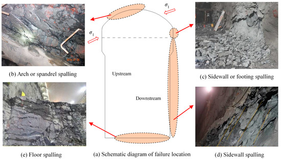 - Jiang, Q.; Feng, X.T.; Fan, Y.L.; Fan, Q.X.; Liu, G.F.; Pei, S.F.; Duan, S.Q. In situ experimental investigation of basalt spalling in a large underground powerhouse cavern. Tunn. Undergr. Sp. Tech. 2017, 68, 82–94. [Google Scholar] [CrossRef]