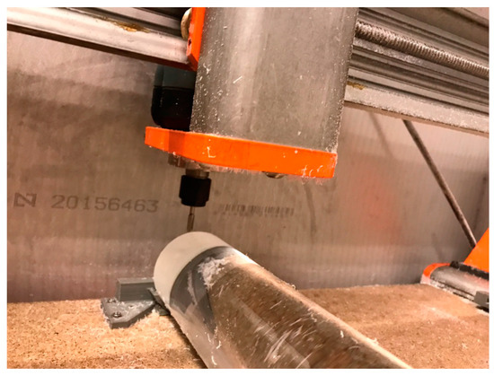The machining process is shown in Figure 6. As can be seen, special holders and tools were designed and 3D-printed. The goal was to attach the components to the cylinder and achieve a length of 1 m.