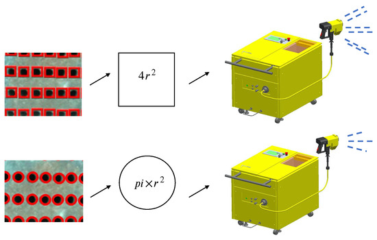 The circle representation provides a more intuitive localization for the circle holes compared to the square representation. Additionally, the circular representation fits the circle holes more closely, leading to more accurate area calculations. Therefore, using the circular area to control the water output of the cleaning machine is more precise.