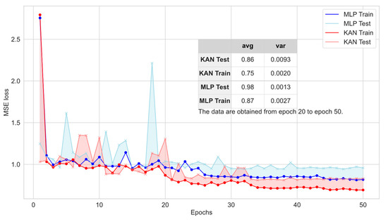 Using the emotion evaluation network, this paper completes the quantitative analysis of students’ emotional expressions and generates the corresponding scores. This section compares the KAN used in the emotion evaluation module with the MLP network, and the MSE is utilized as the main evaluation metric for the emotion evaluation network. Figure 6 illustrates the specific experimental results.