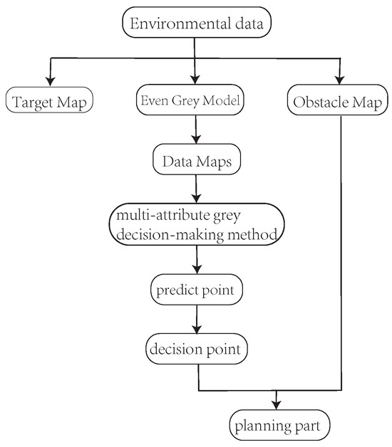 When the environmental structure is unfixed, observations are discrete through the sensor system’s data acquisition process. In order to study path-planning methods, modeling the environmental information of mining caves is necessary. In addition, obviously, a path-planning problem with real-time reactions to environmental uncertainty is NP-hard, which has been proven by Ryan A. MacDonald and Stephen L. Smith using informative path planning [31]. And the partial observable Markov decision process (POMDP) search balances short-term tracking performance and the long-term final cost [32]. The environmental information objectively exists in a stable state of change, in which the subject generally lacks awareness. The external world is a generally steady resource, and stable information is considered to not require storage [33]. Targeting the challenges above, this paper proposes a gray Q-Learning (GQL) search area path-planning method using UGV as the agent. This method combines the even gray model (EGM) prediction model, the MAI gray decision process, and the Q-Learning (QL) action planning model. The main contributions of this paper are as follows: