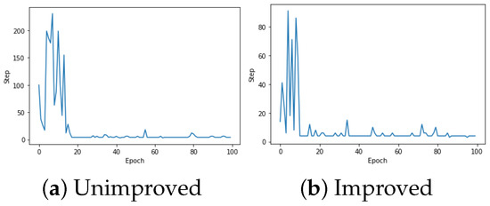 A comparison of different solutions in Table 2 in terms of training effectiveness. (a) The change process of training steps in the unimproved scheme. (b) The change process of training steps in the improvement plan.