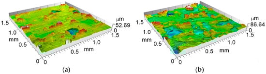 The following indices were used to assess the height of the shaped irregularities on the tested surfaces [44,45,46]: