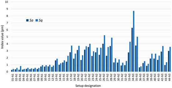 Values of indices Sa and Sq obtained during the machinability tests of EN-GJS-600-3 ductile cast iron.