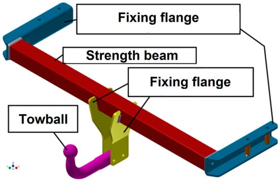 The general shape of the towing system is shown in Figure 1, with the same components found in all passenger car systems, but with different shapes. The composition of the towing systems is approximately the same for all car models. The towing hook can have many shapes, so as not to overlap the rear bumper of the car but also depending on the model of the hook.