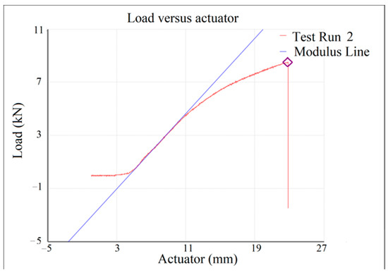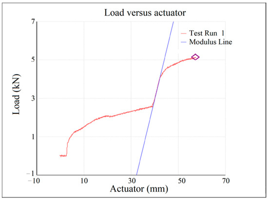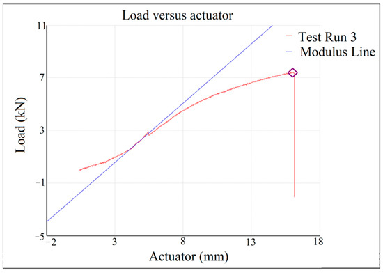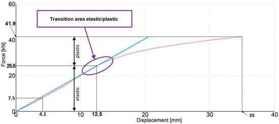 - Around force F = 25.5 kN, the towing assembly reaches its yield strength, but the test process continues safely with integrity of the assembly. Near the value of F = 42 kN, the experimental testing stopped because the hook was rapidly deformed, the actuation punch being very close to contact with the bending area of the hook, which would have been followed by a considerable but irrelevant increase in force for the present study.