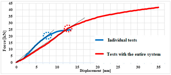 Comparing the behavior of the steel towbar tested individually with that tested in the towing system as a whole, an interesting thing is observed. Twisting the strength beam of the tow assembly facilitates and helps the tow hook to suffer a lower sag.